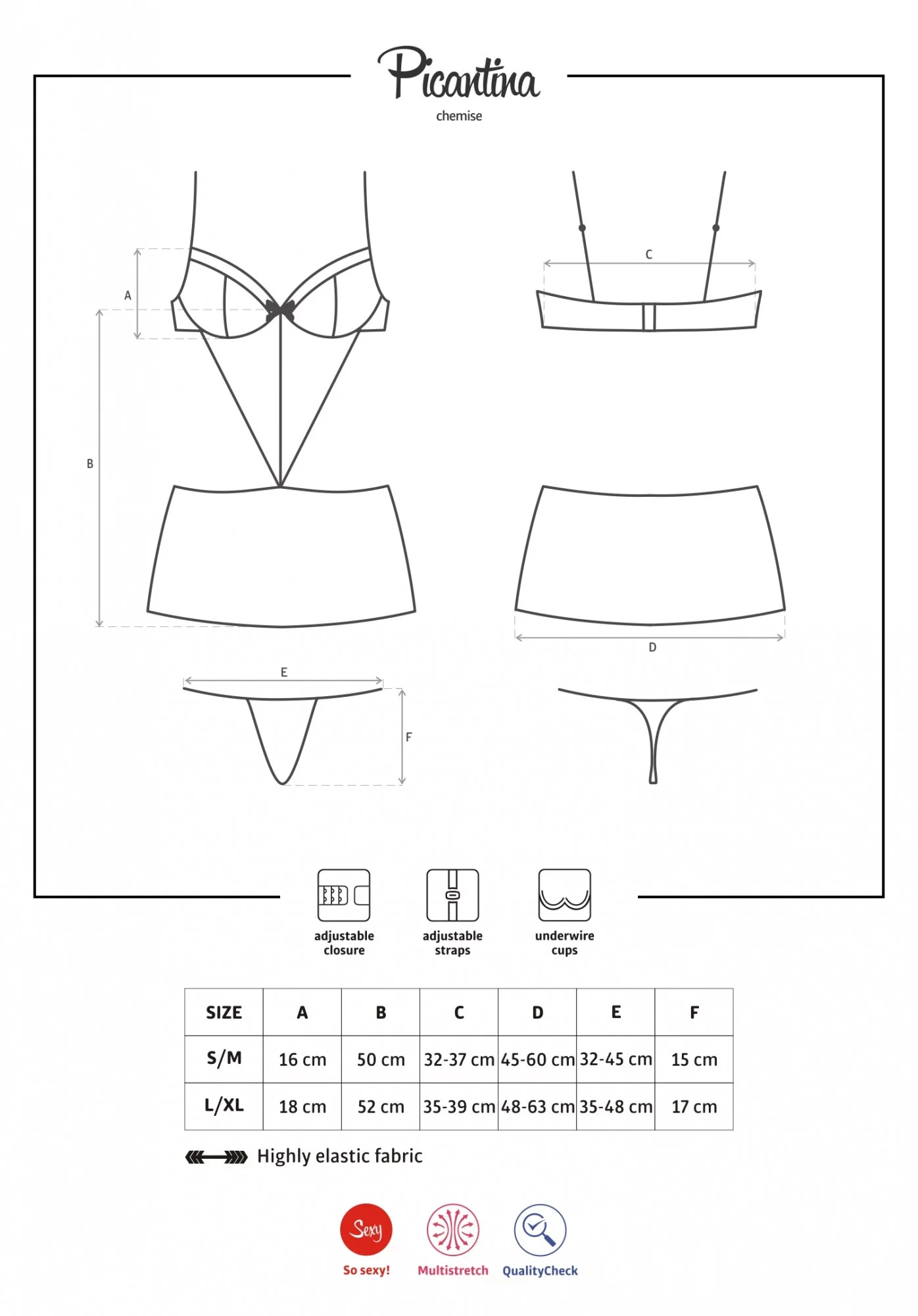 Košieľka picantiny chemise - Obsessive L/XL černá