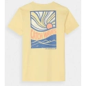 potlač na zadnej strane s motívom slnka a vĺn s nápisom "Catch Waves" (Chyťte vlny)