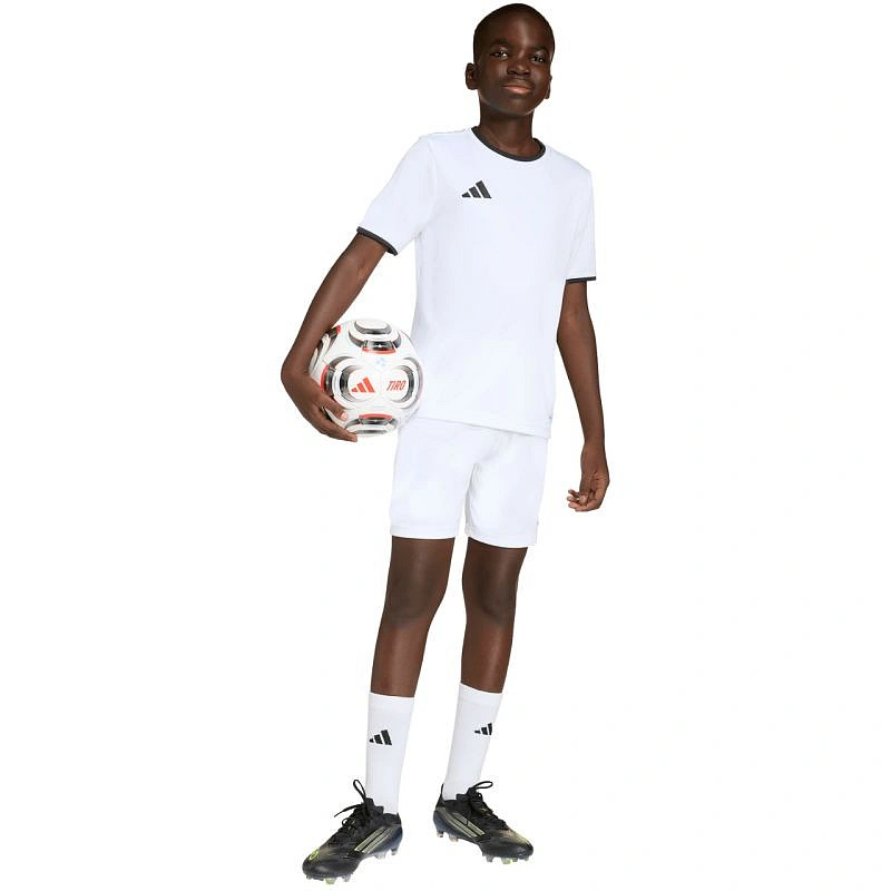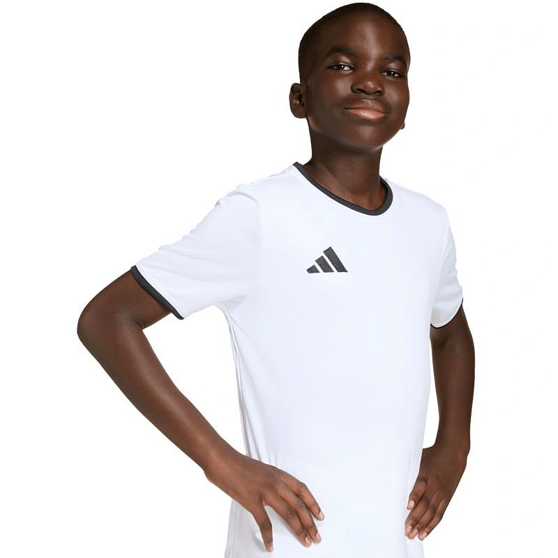 Detský dres adidas Entrada 26 White/Black JZ2532 by mal byť základom športového šatníka každého mladého futbalistu, ktorý chce zdokonaľovať svoje zručnosti v plnom sústredení. Ľahká polyesterová konštrukcia je podporená technológiou Climacool, ktorá pomáha odvádzať pot od pokožky a ponúka svieži, suchý a chladivý pocit. Klasický strih neobmedzuje v pohybe. Estetické prevedenie s okrúhlym výstrihom a vyšitým logom. materiál: 100% recyklovaný polyester.