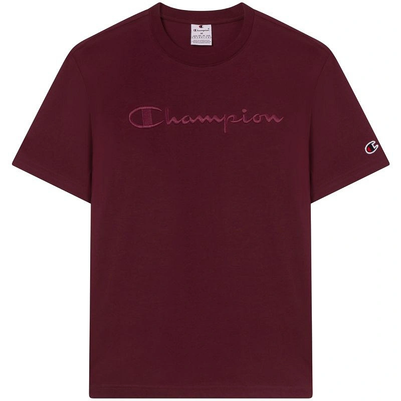 Pánske tričko Champion SS Tee Bordeaux 220273 RS522 Pánske tričko Champion je ideálne na každodenné nosenie. regular fit. malé logo na rukáve. veľké logo na hrudi. 100% bavlna