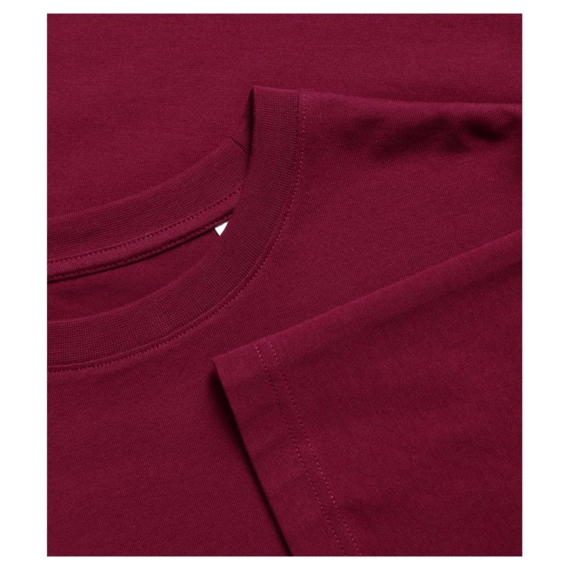 Jednoduchý džersej, 100 % bavlna (zloženie sa môže líšiť - farba 12 - 85 % bavlna, 15 % viskóza), enzymatická úprava bez štítku - pripravený na prelepenie, voľný strih s bočnými švami, neutrálny štítok s veľkosťou na zadnom výstrihu, výstrih ukončený rebrovaným úpletom 1:1 s 5 % elastanu, výstrih spevnený páskou z vrchnej tkaniny, spevňujúci šev na ramenách, predĺžená línia ramien, enzymatická úprava