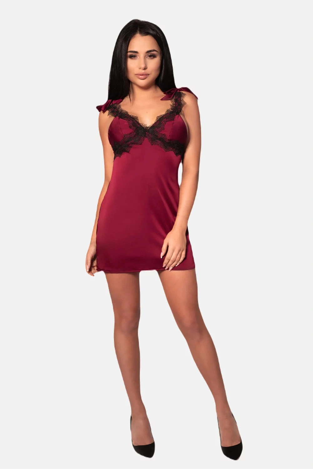 - saténová nočná košeľa vo vínovej a čerešňovej farbe