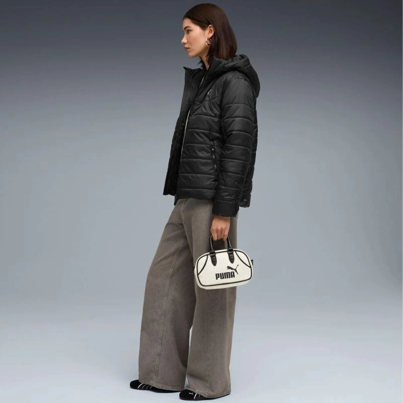 Dámská bunda Puma ESS Hooded Padded black 685231 01 Dámská bunda Puma zajistí dostatečnou izolaci před chladem v chladnějším období. Prošívaná konstrukce přispívá k rovnoměrnému rozložení syntetického prachového peří. Technologie WarmCell zajišťuje tepelnou izolaci při zachování dostatečné úrovně ventilace. Bunda byla na tkanině opatřena vodoodpudivou úpravou, která má v kombinaci s technologií RainCell na svědomí sníženou absorpci vlhkosti. Pravidelný střih s dlouhým zipem. Neodnímatelná kapuce bez možnosti regulace. Technologie WindCell. Dvě boční kapsy na zip. Technické údaje: - Vnější tkanina: 100% polyester - Podšívka: 100% polyester - Výplň: 100% polyester - Bunda vyrobena z minimálně 90% z recyklovaného materiálu.