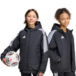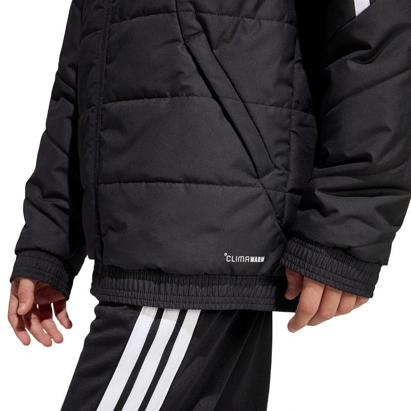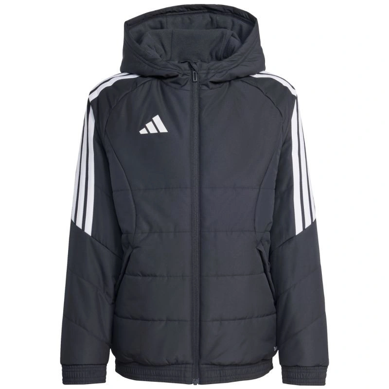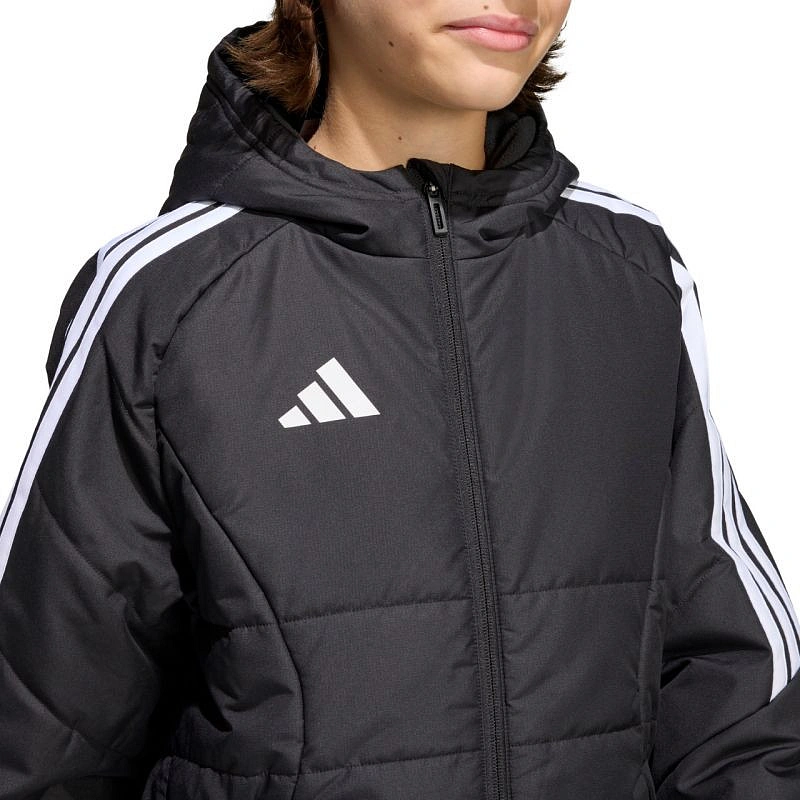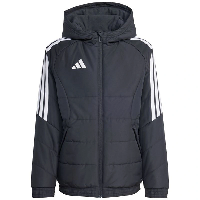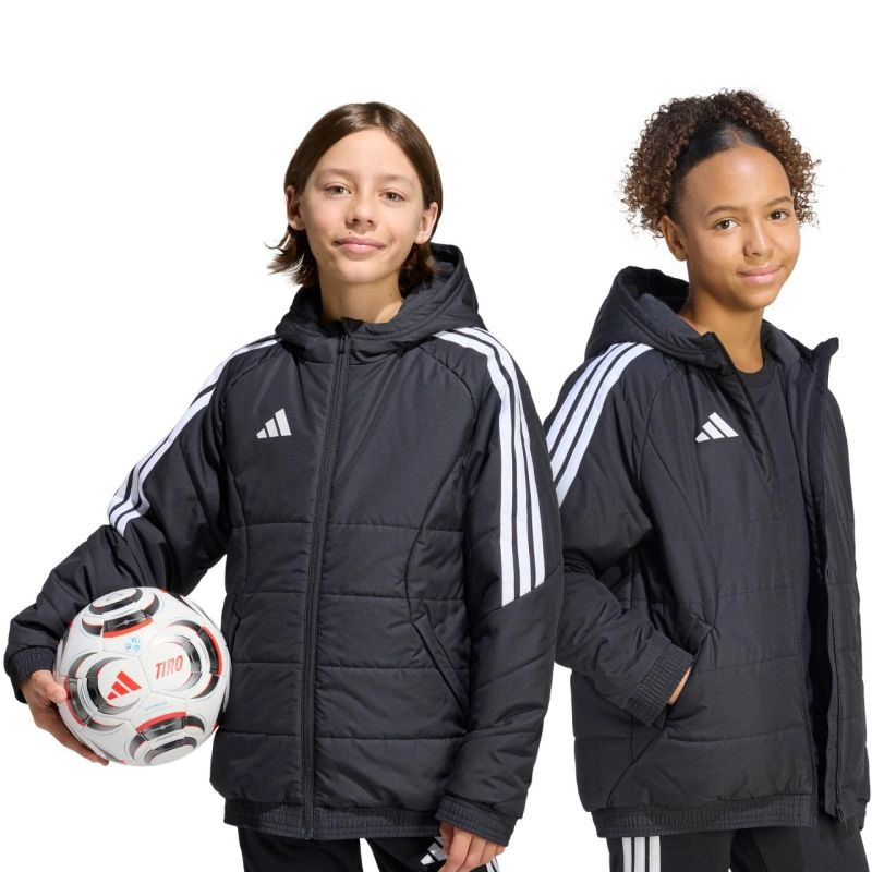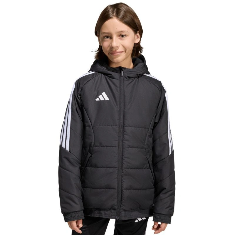 Detská bunda adidas Tiro 26 Winter black KA5319 z futbalového radu adidas Tiro je vhodná na každodenné nosenie. Syntetická výplň rovnomerne rozložená v horizontálnych širokých paneloch pomáha udržiavať optimálnu telesnú teplotu. Tradičný strih. Zips po celej dĺžke. Bočné vrecká na zips. Elastické manžety a spodný lem. Neodnímateľná, nenastaviteľná kapucňa nasadená na vysokom golieri. Pruhy na rukávoch. Jemné logo na prednej strane. Technológia Climawarm. Hydrofóbne vlastnosti vonkajšej vrstvy. Vetruodolná tkanina. Vonkajšia tkanina: 100% recyklovaný polyesterVýplň: 100% recyklovaný polyester.