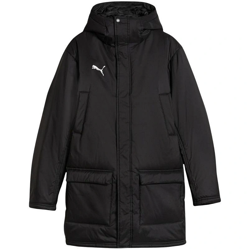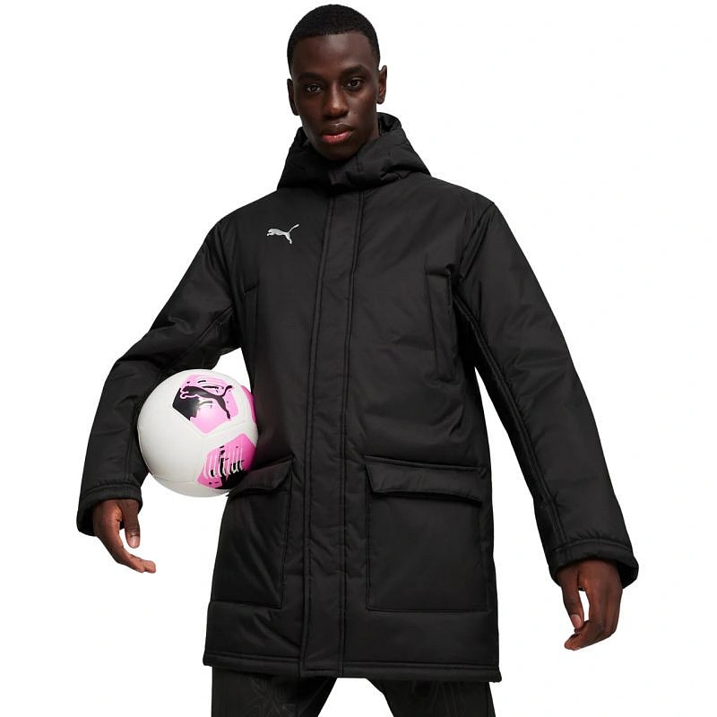 Pánska zimná bunda Puma Team Final čierna 658569 03. Táto pánska bunda Puma vás ochráni pred chladom v zimných mesiacoch. Zapínanie na zips po celej dĺžke. Syntetická výplň. Viacero vreciek. Priliehavý strih. Neodnímateľná kapucňa bez možnosti nastavenia. Malé logo. Technické špecifikácie:- Materiál: 100 % polyester- Výplň: 100 % polyester- Podšívka: 100 % polyester.