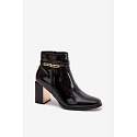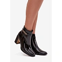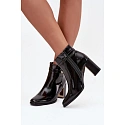 Dámske členkové čižmy vyrobené z lakovanej ekokože. Model je postavený na stabilnom stĺpikovom podpätku, zdobený zrkadlovým prvkom, pôsobí veľmi efektne. Vrchnú časť zdobí tenký remienok so zlatým detailom. Čižmy sa zapínajú na zips, ktorý zaručuje pohodlie pri obúvaní. Vyhrievané vnútorné prostredie zaručuje teplo a pohodlie počas chladnejších dní. Ideálna voľba pre ženy, ktoré ocenia eleganciu v každodennom štýle - vhodné do práce, na stretnutia alebo večerné vychádzky. Pri výbere veľkosti sa riaďte veľkostnou tabuľkou. Pri výbere veľkosti sa riaďte veľkostnou tabuľkou.
