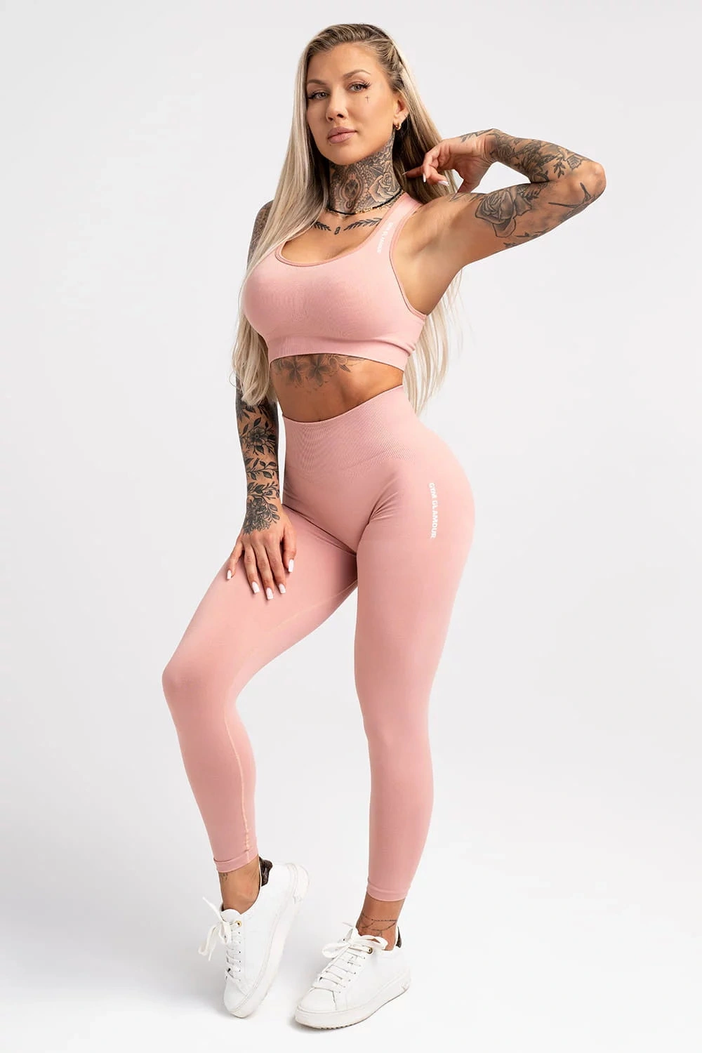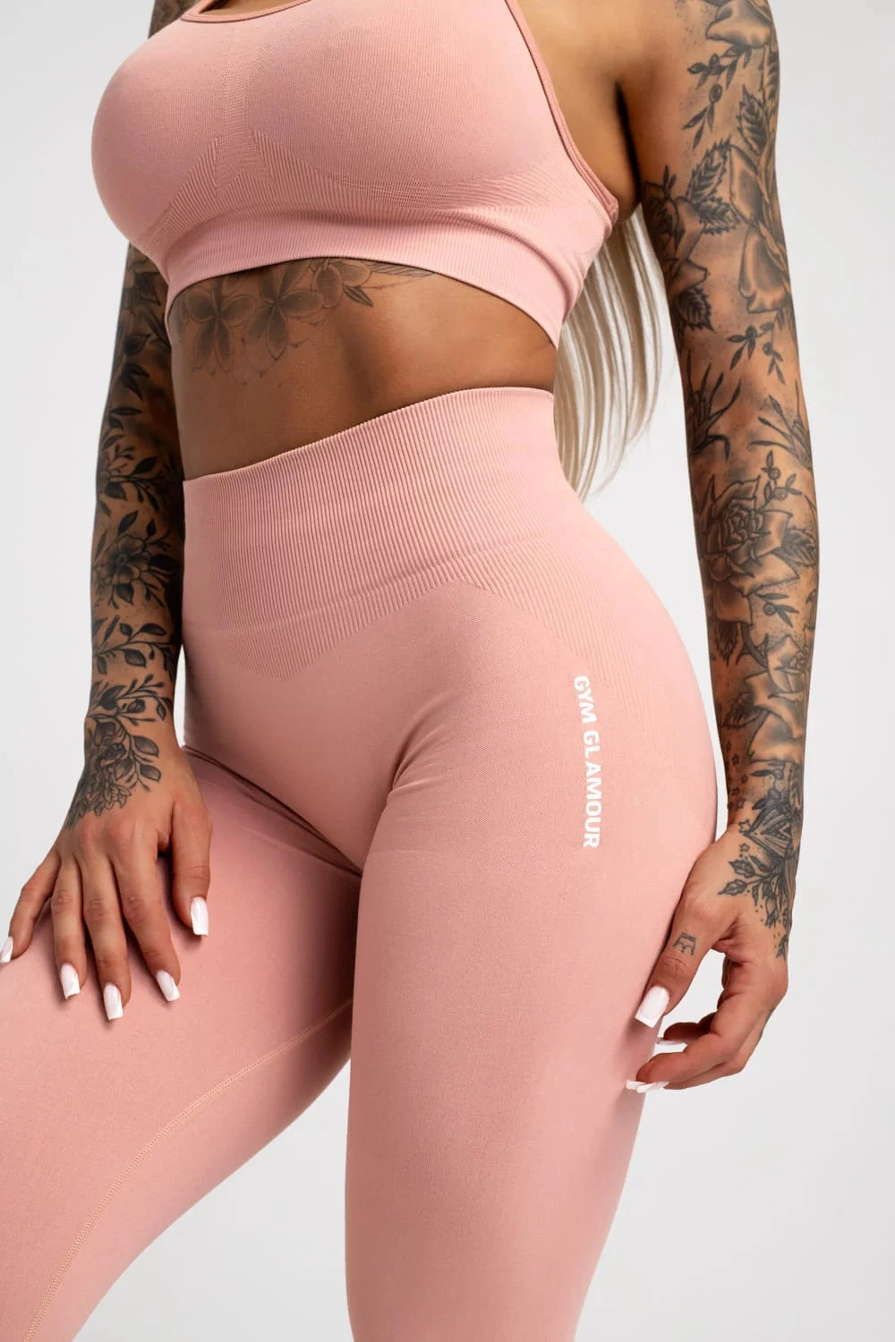 Kolekcia 2022 Less Is More Bezšvové kompresné legíny. Legíny maskujú nedokonalosti, skvele sa hodia na každý typ postavy. Ako pre svalnaté ženy, tak aj pre tie, ktoré necvičia. Materiál je silný, pružný a mäsitý. Ide o výrobok s najsilnejším materiálom v našej ponuke. Veľa sťahuje a tvaruje siluetu a zároveň netlačí a nespôsobuje nepohodlie pri intenzívnom cvičení. Pás je pevný a stabilný. Dokonale drží brucho, zužuje pás a poskytuje pohodlie pri cvičení. Nové logo - nápis Gym Glamour na boku, vyrobený z vylepšenej fólie. Nepriehľadné. Ani pri náročnom tréningu nie sú vidieť stopy potu. nezostávajú na nich žiadne peľ, vlasy a pod. Ideálna nielen na tréning, ale aj na každodenné nosenie. Skrytý, malý klin (vložka v rozkroku).