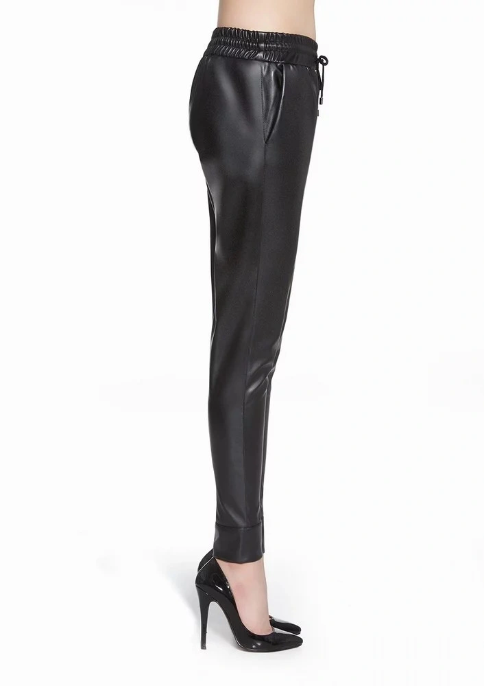 Pohodlné nohavice z eko kože Dakota Bas Bleu imitujú kožu, sú elastické a tvarujú postavu. 200 DEN.