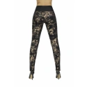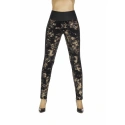 Dámske legíny z elastanovej priadze, matné, bez vyznačeného pásu, zdobené potlačou malých čiernych s