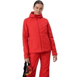 - Dámska lyžiarska bunda 4F s kapucňou má nepremokavú a priedušnú membránu NeoDry 8 000/5 000, ktorá chráni pred miernym dažďom alebo snehom počas zimných aktivít.