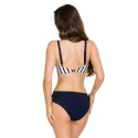 Nadčasová klasika splní očakávania aj tých najnáročnejších žien! Dokonalá konštrukcia a strih zvýrazňujú a vyzdvihujú poprsie. Košíčky vďaka sieťovanej konštrukcii pekne udržujú poprsie na správnom a požadovanom mieste. Vrchná časť košíčkov je vyrobená z tmavomodrého mikrovlákna. Spodná časť košíčkov je pruhovaná (tmavomodré prúžky na bielom podklade). Ramienka sa dajú nastaviť. Podprsenka sa vzadu zapína na pohodlnú sponu. Na vytvorenie pekného kompletu odporúčame pohodlné plavkové nohavičky s nariaseným pásom.