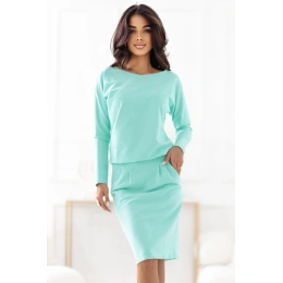 Pohodlné, ženské a štýlové - mätové šaty Numoco sú ideálnou voľbou na každodenné nosenie, do kancelárie alebo na prechádzku. Voľný strih s dlhými rukávmi poskytuje pohodlie, zatiaľ čo praktické vrecká a decentný výstrih na chrbte dodávajú módny charakter. Sú vyrobené z vysokokvalitného materiálu, perfektne sedia na postave a hodia sa k mnohým možnostiam stylingu.