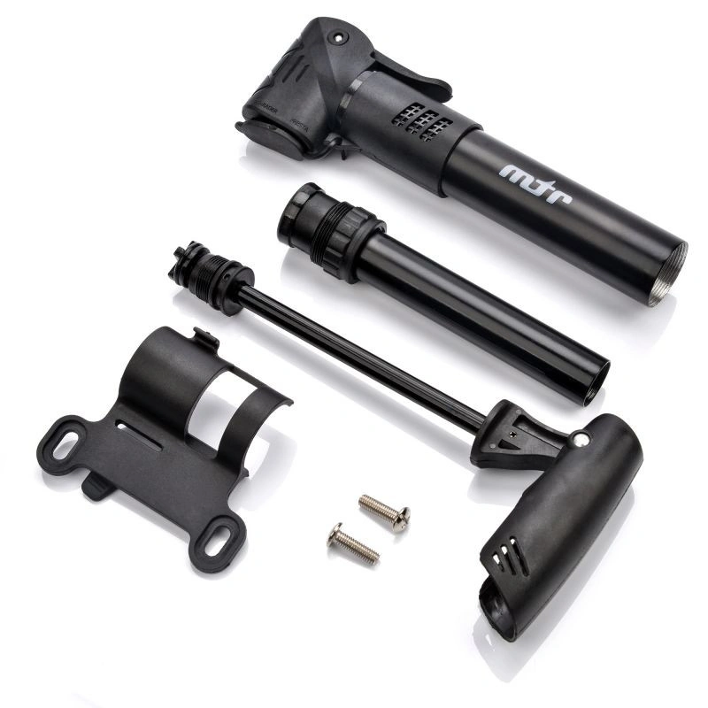- Ľahká plastová minipumpa na bicykel. Vďaka kompaktným rozmerom sa dá ľahko skladovať a prepravovať.