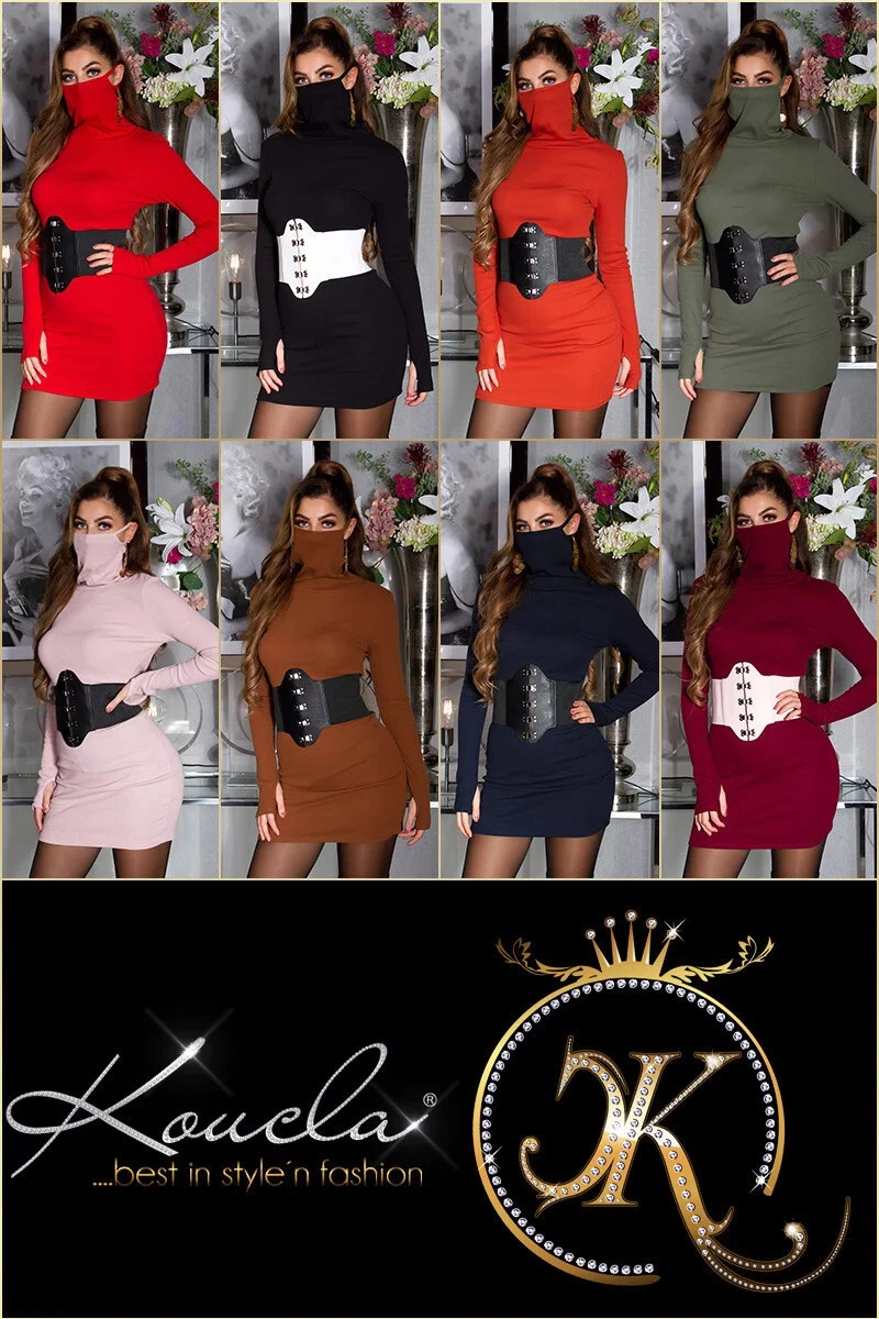 Dámske priliehavé minišaty s vysokým rolákom - maska. 95% bavlna, 5% elastan