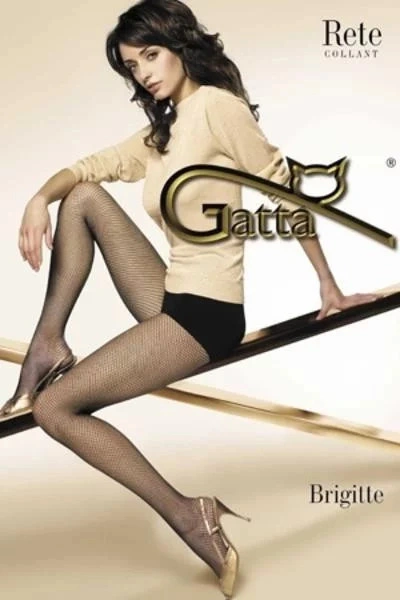 Dámske, sieťované, pančuchové nohavice Gatta Brigitte 01 so vzorom ok typu kabaretka, vyrobené z priadze opradenej nite bez vyznačenej sedacej a prstovej časti.
