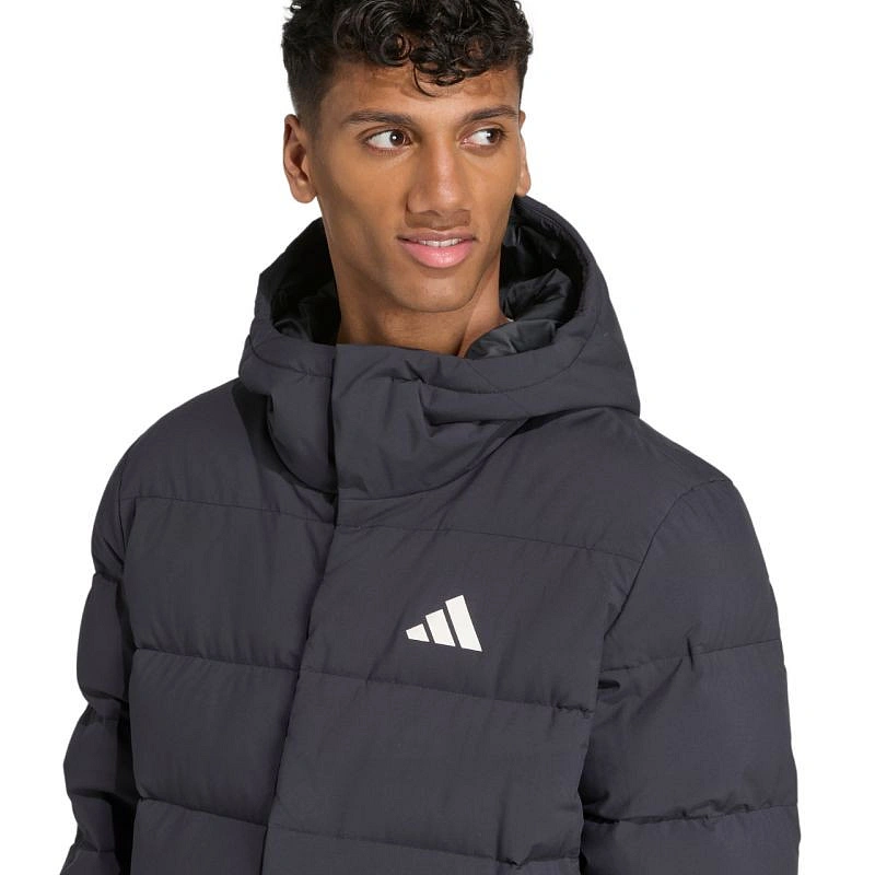 Pánska bunda adidas Helionic Jacket Black JN2099 Pánska bunda adidas vytvára izoláciu pred chladom vďaka prírodnej výplni, ktorá bola zapuzdrená do horizontálnych panelov. Pravidelný strih. Spodná časť so šnúrkou na nastavenie. vetrovka s neviditeľným zapínaním. neodnímateľná kapucňa s elastickým výrezom. zips po celej dĺžke. vrecká na zips. tepelná izolácia a vodoodpudivosť pre optimálnu ochranu vonkajšej vrstvy. Climawarm. technické údaje:- vonkajšia vrstva: 100% recyklovaný polyester- vnútorná vrstva: 100% termoplastický polyuretán- výplň: 80% kačacie páperie, 20% perie (600 Fill Power).