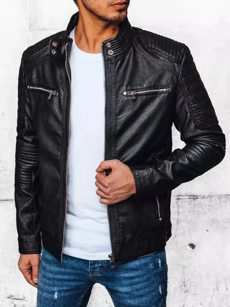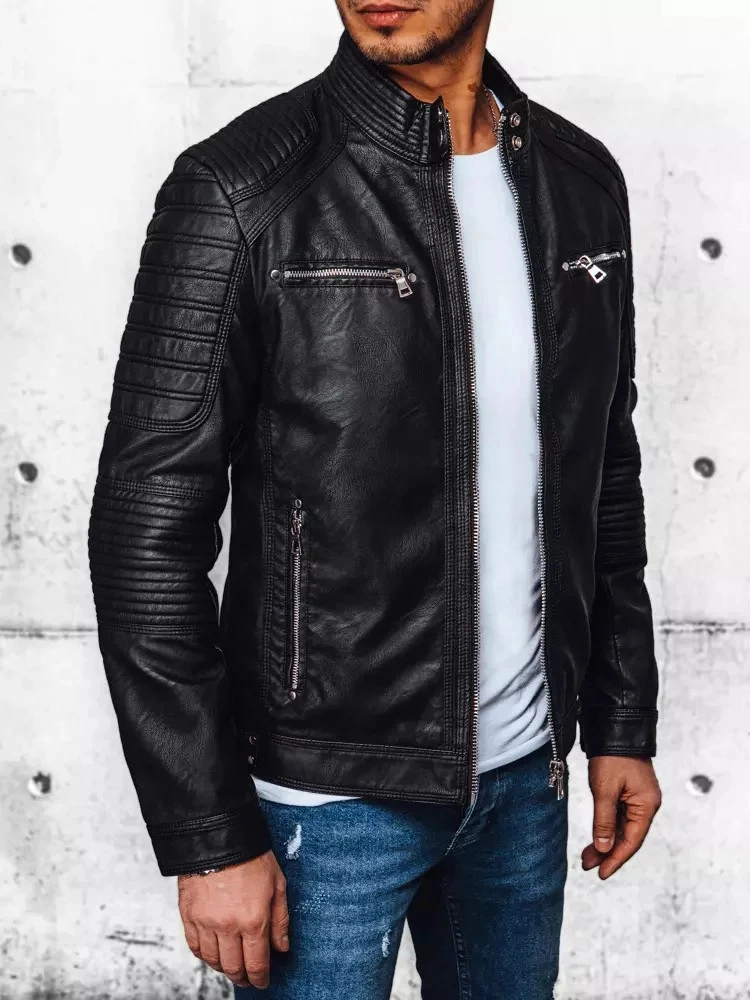Pánska čierna kožená bunda čierna TX4388 - Dstreet