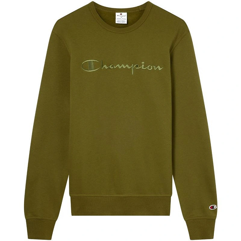 Pánska mikina Champion Crewneck Olive 220272 GS585 Táto pánska mikina Champion je ideálnou mikinou na každodenné nosenie. Vysoký obsah bavlny zabezpečuje optimálne odvetrávanie tela bez rizika podráždenia. Klasický strih je pohodlný na pohyb, rebrovanie na manžetách a spodnom okraji zabraňuje úniku tepla. Vyšívané logo na prednej strane. Nášivka s logom na ľavom rukáve. Zadná strana bez nápisov a motívov. Hlavný materiál: 70 % bavlna, 30 % polyester.