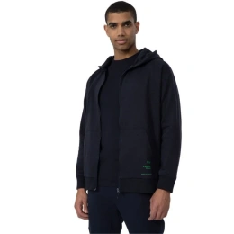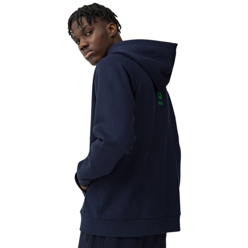 Zateplený model. Štandardný strih. Neodnímateľná kapucňa. Malá potlač na prednej a zadnej strane. Otvorené vrecká na prednej strane. Rebrované manžety a spodný okraj. Rebrovaný lem. Česaná vnútorná strana poskytuje tepelný komfort. Vyrobená z príjemného úpletu s vysokým obsahom bavlny.