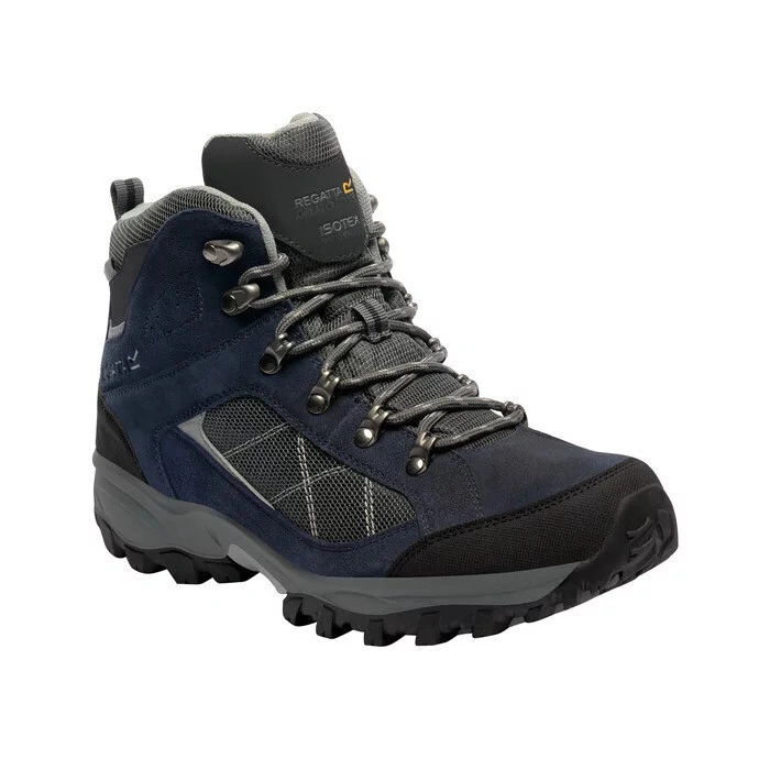 Pánske turistické topánky Regatta Clydebank z kolekcie Men's Hiking sú vybavené nepremokavou a zároveň priedušnou membránou Isotex a povrchovou ochranou Hydropel, ktorá odpudzuje kvapky vody, takže je menej pravdepodobné, že sa na topánku prilepí špina.