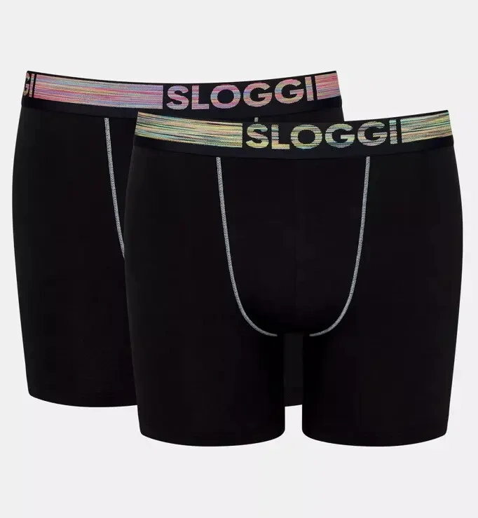 Vezmite si dvojbalenie našich šortiek GO ABC Natural zo super mäkkej organickej bavlny s výraznými pásikmi značky sloggi, ktoré sú čiastočne vyrobené z recyklovaných materiálov.