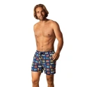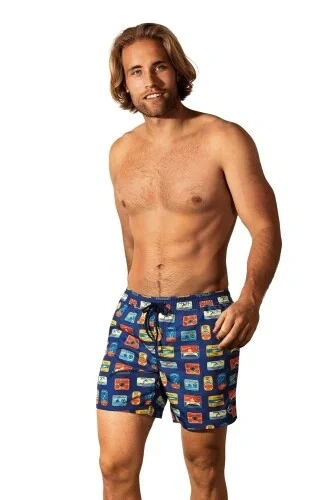 Pánske plavecké šortky z tenkej vzorovanej tkaniny - výhodou je kratší čas schnutia. Model je ideálny na kúpanie na pláži a v mori. V páse majú pohodlnú širokú gumu a šnúrku na stiahnutie, ktorá umožňuje zaväzovanie a prispôsobenie plaviek správnej veľkosti. Pohodlné vrecká na bokoch, vzadu vrecko s chlopňou so zapínaním na suchý zips. Vnútro nohavičiek zo vzdušnej sieťoviny.