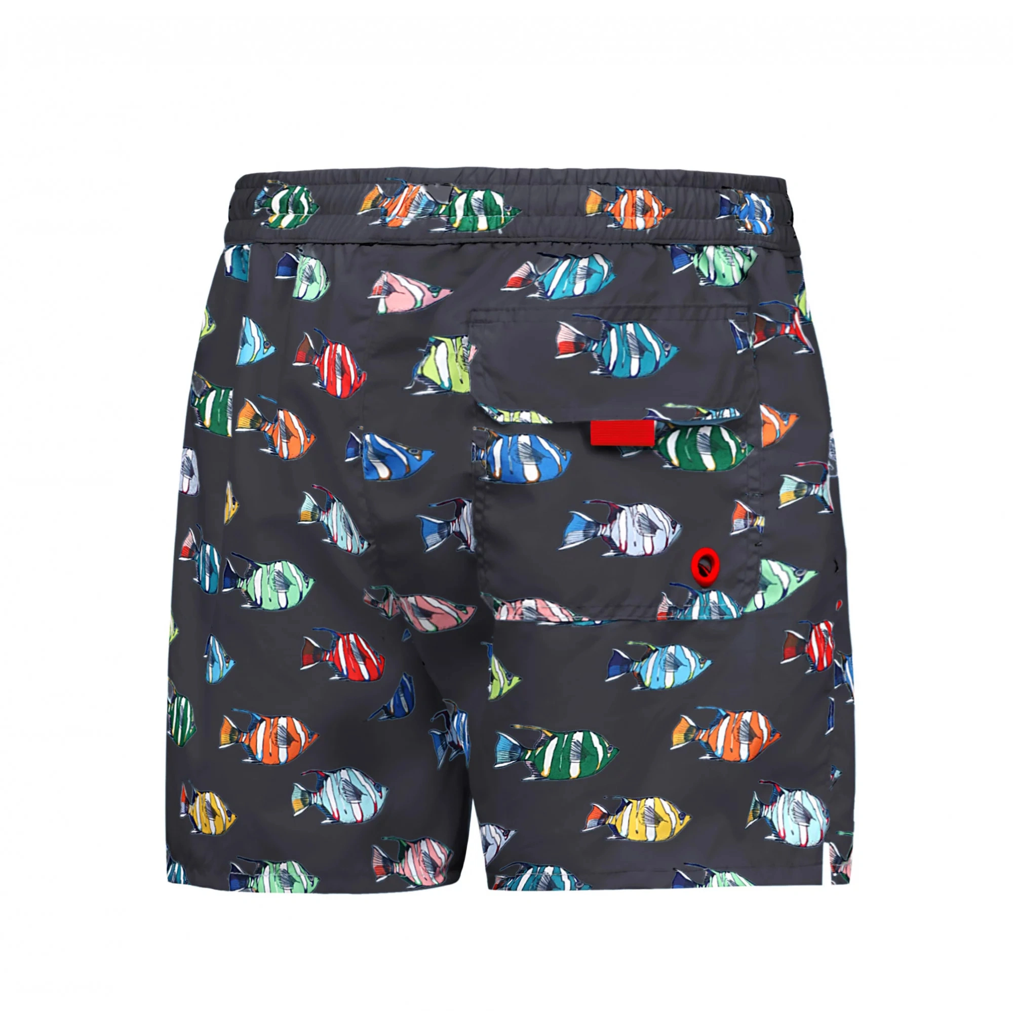 Pánske plavecké šortky z tenkej vzorovanej tkaniny - ich výhodou je kratší čas schnutia.tento model je ideálny na kúpanie na pláži a v mori.plavky majú pohodlný široký elastický pás a šnúrku, ktorá umožňuje zaväzovanie a nastavenie správnej veľkosti.pohodlné vrecká na bokoch, zadné vrecko s chlopňou a zapínaním na suchý zips.vnútro nohavičiek je zo vzdušnej sieťoviny.
