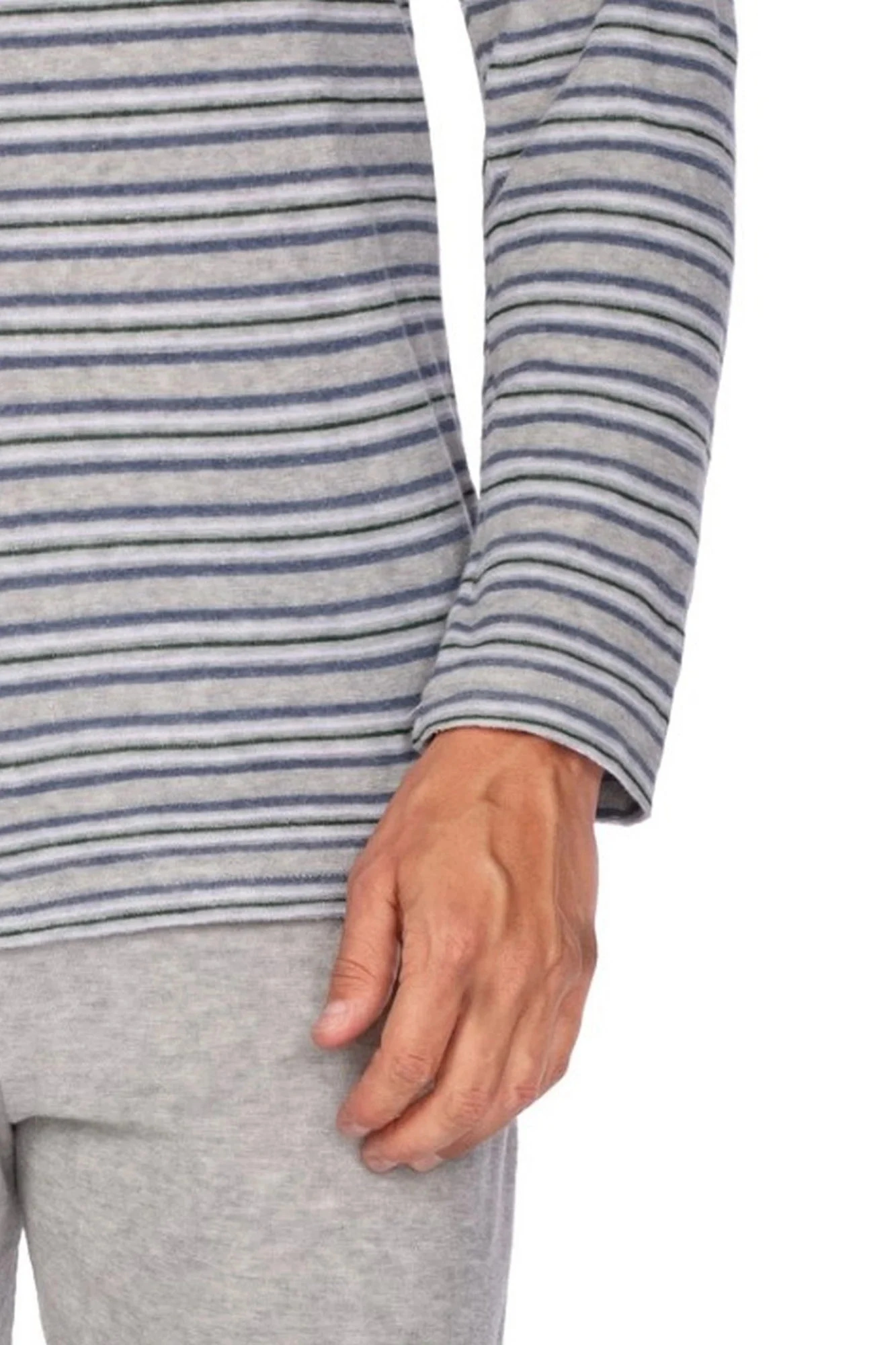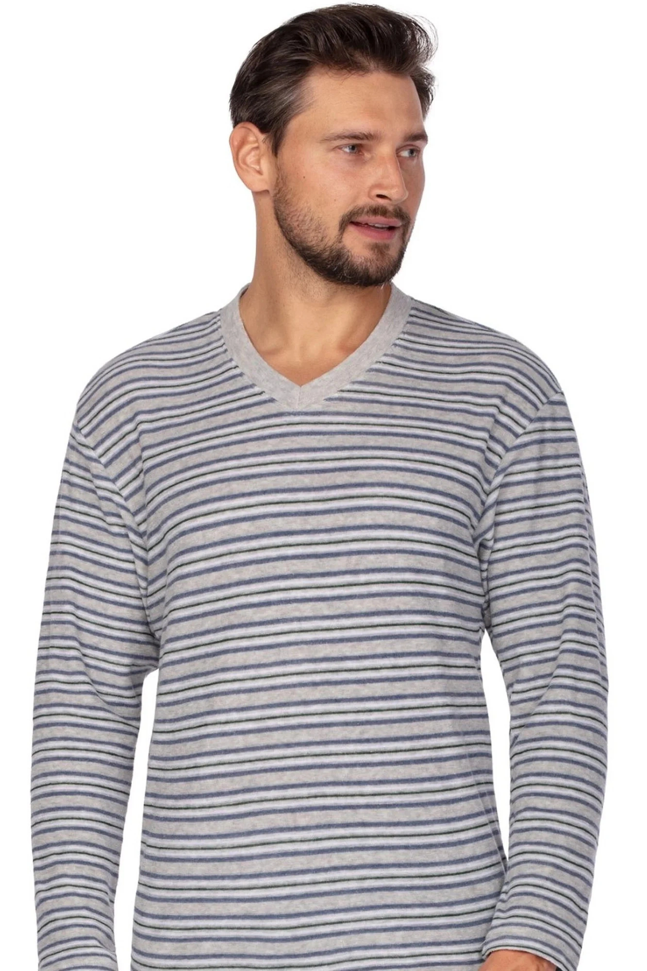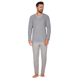 Pánske pyžamo 450 šedá REGINA - vyrobené z kvalitnej froté bavlny - pruhované tričko s dlhým rukávom - pohodlné dlhé sivé nohavice