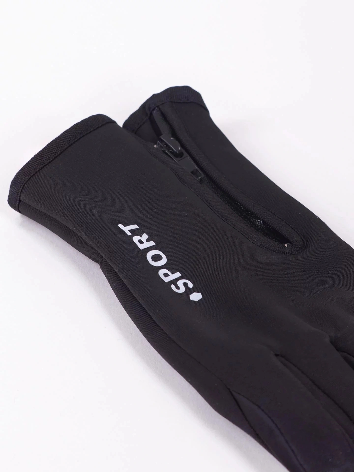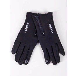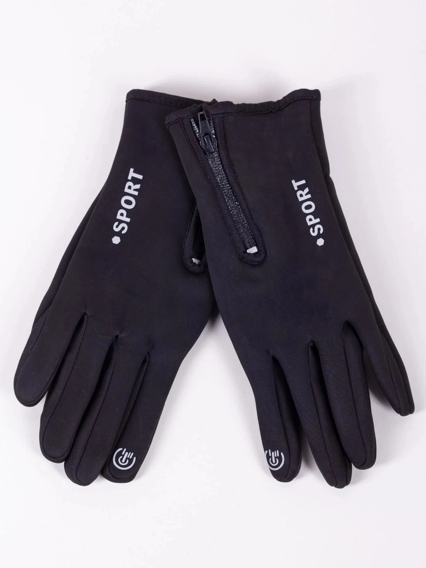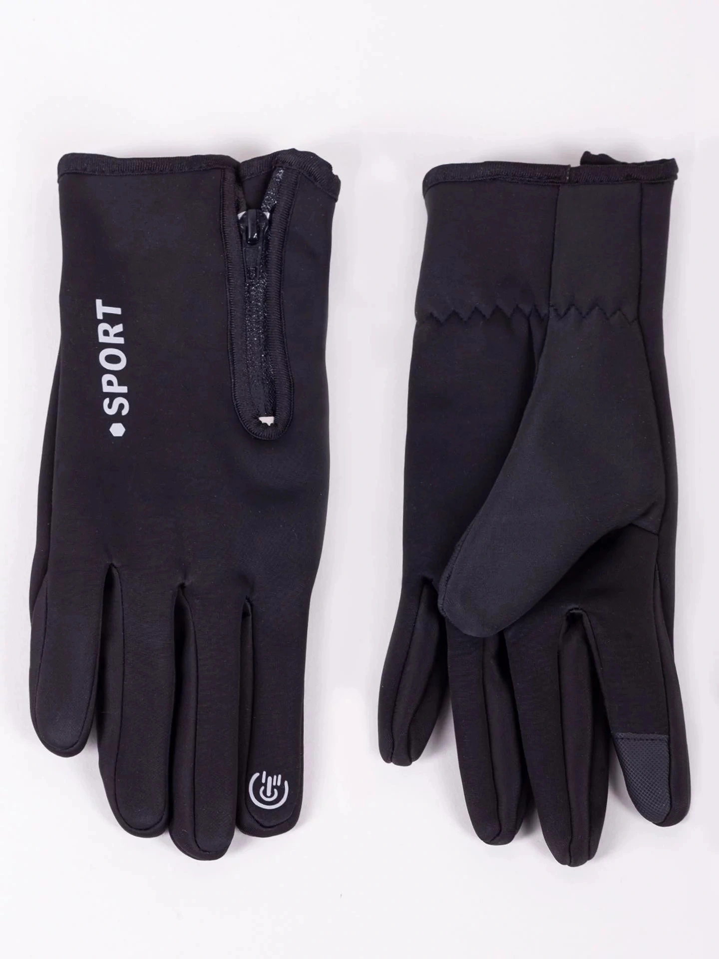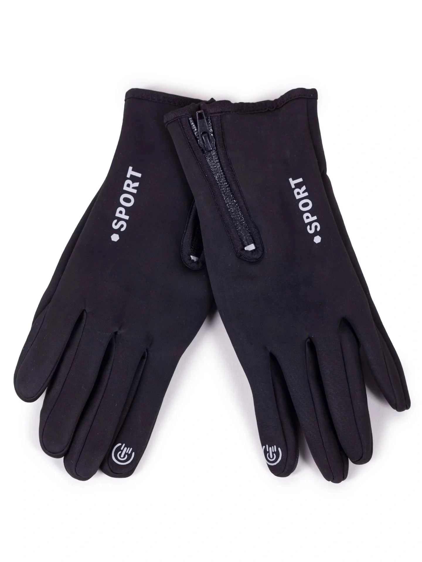 Praktické pánske rukavice v čiernej farbe, ideálne na zimu - poskytujú pohodlie a teplo. Na hornej časti rukavíc je výraz a nápis "SPORT". Na koncoch ukazovákov aj palcov je všitý materiál, ktorý umožňuje používanie dotykových displejov. Sú pružné, dobre priliehajú k ruke. Vo vnútri sú zakončené materiálom príjemným na dotyk.