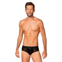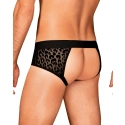 Výnimočne mužný a sexy dizajn v klasickej čiernej farbe - nohavičky Jockstrap z kolekcie Azmeron. Odvážny strih a pikantný zvierací vzor spolu dokonale ladia a zaručujú neuveriteľne zaujímavý vzhľad. Rez na zadku priťahuje pozornosť a vyzýva na horúce chvíle pre dvoch.