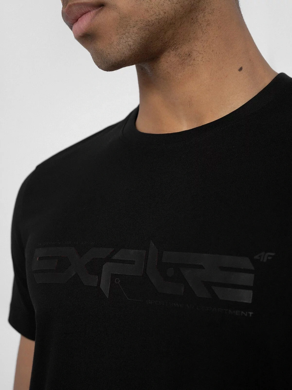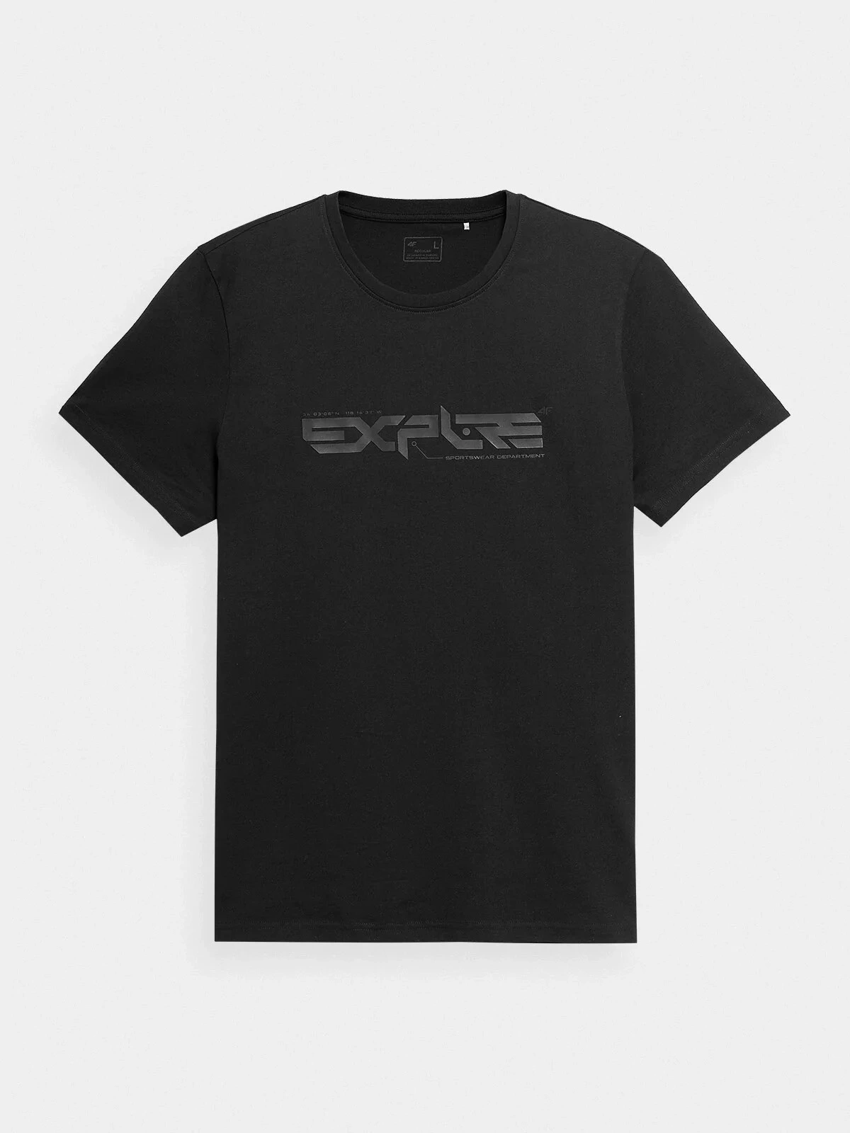 Pánske bavlnené tričko s krátkymi rukávmi a potlačou na prednej strane.