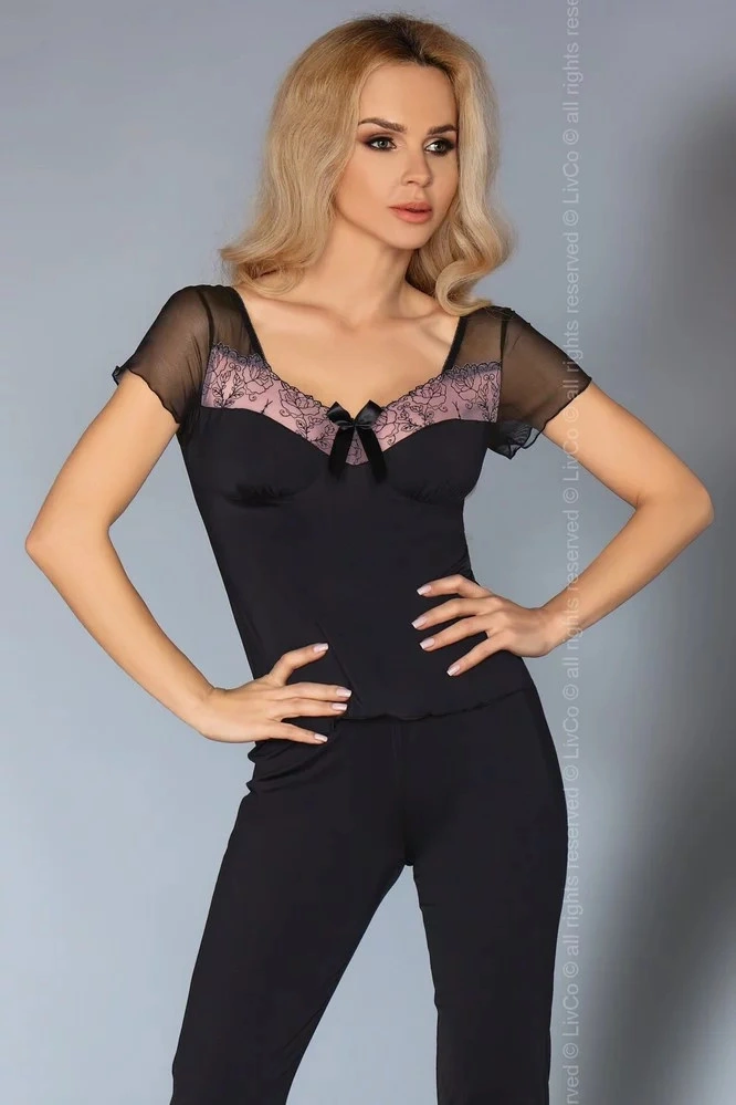 Dámsky komplet Siona LivCo s luxusnými čipkovanými detailmi dvojdielny komplet je z kombinácie viskó