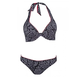 Dámske dvojdielne plavky, vrchný diel vystužený, s odopínacími ramienkami na posúvanie. Spodný diel