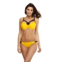 Dámske dvojdielne plavky Electra M-542 v žlto-čiernom prevedení. Vrchný diel vystužený, s kosticami. Zaväzovanie za krkom a na chrbte. Medzi prsiami zaujímavá aplikácia z čiernych pásikov. Nastaviteľné ramienka.