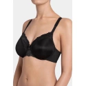 Klasická čierna podprsenka z peny, tylu a čipky, ktorá jemne tvaruje a pozdvihuje poprsie. Horná čas