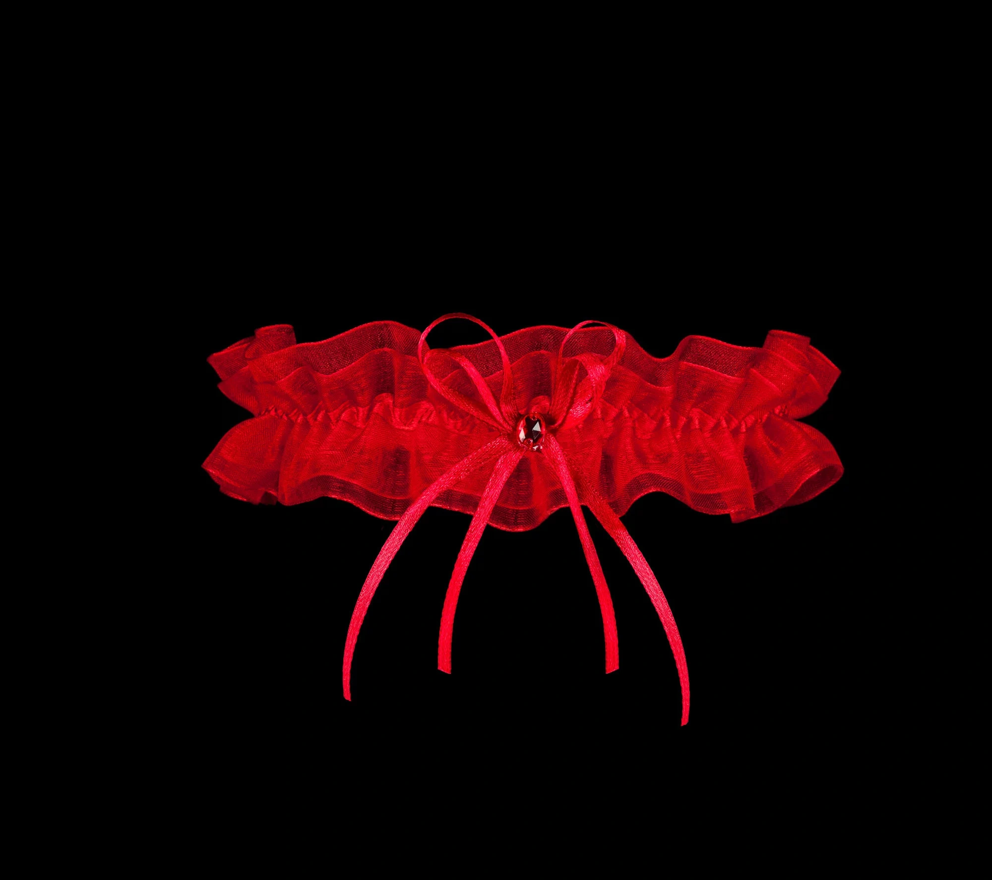 Vysoko cenený model podväzkov Odessa je vyrobený z červeného riaseného tylu podšitého vhodnými gumič