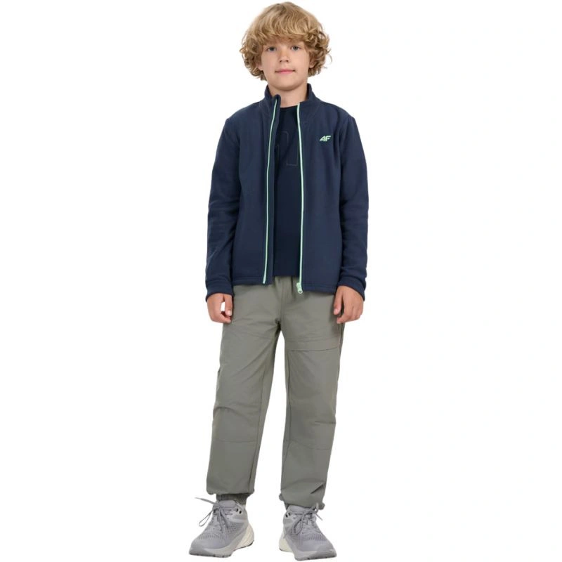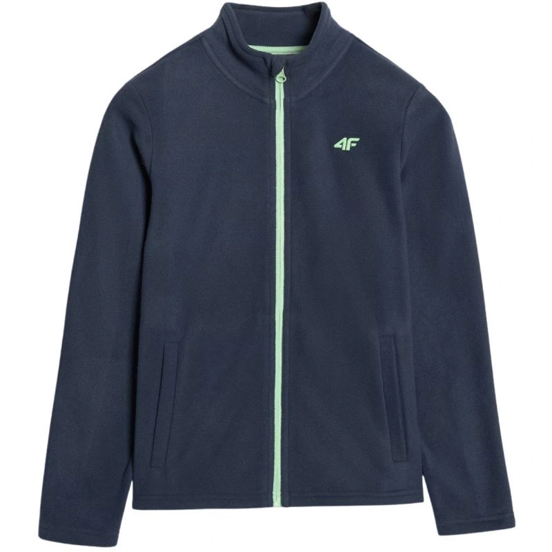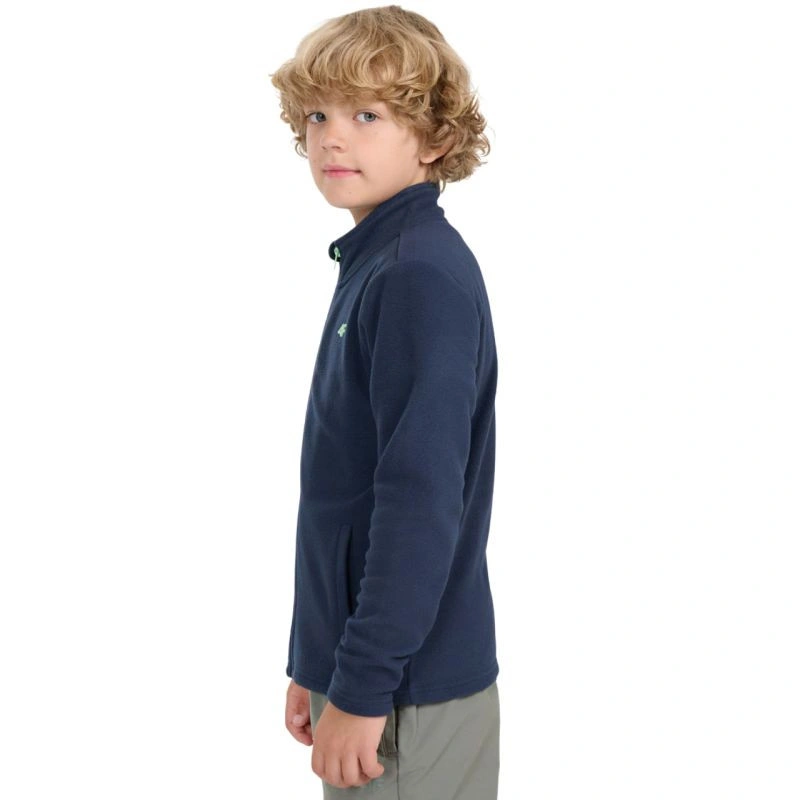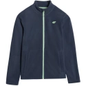 Chlapčenský fleece 4F M413 v tmavomodrej farbe 4FJWAW25TFLEM413 31S je dokonalý fleece na každodenné nosenie s jednostranne česanou vnútornou stranou pre väčšie teplo, pravidelným strihom, štandardným strihom po boky, mäkkou flísovou tkaninou a jednofarebným dizajnom, ktorý sa hodí k rôznym outfitom. Stojačik na ochranu krku, klasické manžety, 2 otvorené vrecká na bokoch, jednosmerný hlavný zips a technológia 4FWarm pre väčší tepelný komfort.