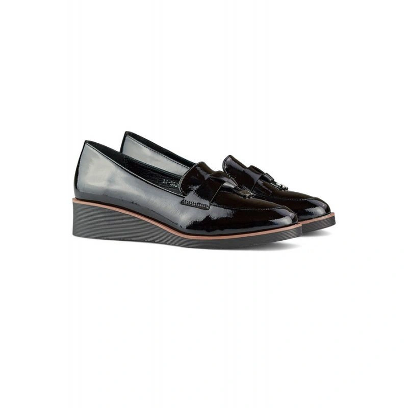 Dámske lakované čierne čižmy na podpätku 24-58266B 38
