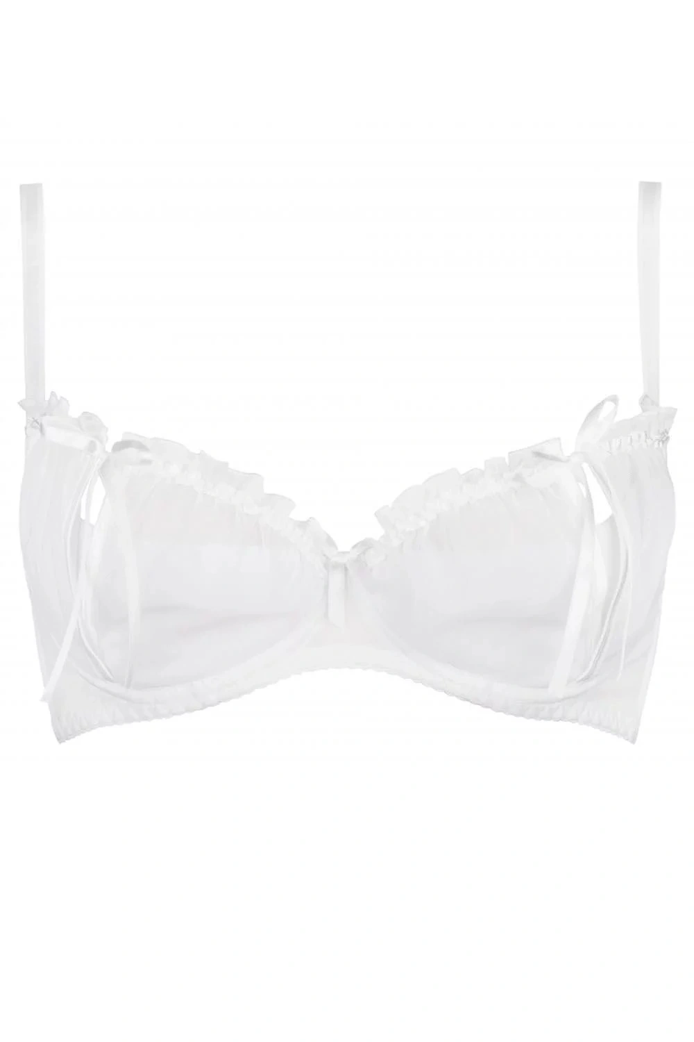 Zmyselná snehobiela polodupačka Neige, ktorá zvádza svojimi nepostrehnuteľnými prestrihmi na košíčkoch.Podprsenka je vyrobená z jemnej tylovej sieťoviny, ktorá zvýrazní a podčiarkne vašu ženskosť a zmyselnosť. Krásu modelu dotvárajú hravé mašle. Model má bočné kostice. Popruhy sa dajú nastaviť, ale nedajú sa odstrániť. Zapínanie je na dva háčiky s trojstupňovou možnosťou nastavenia veľkosti obvodu.Súpravu môžete vytvoriť spolu so string nohavičkami a podväzkovým pásom Neige.