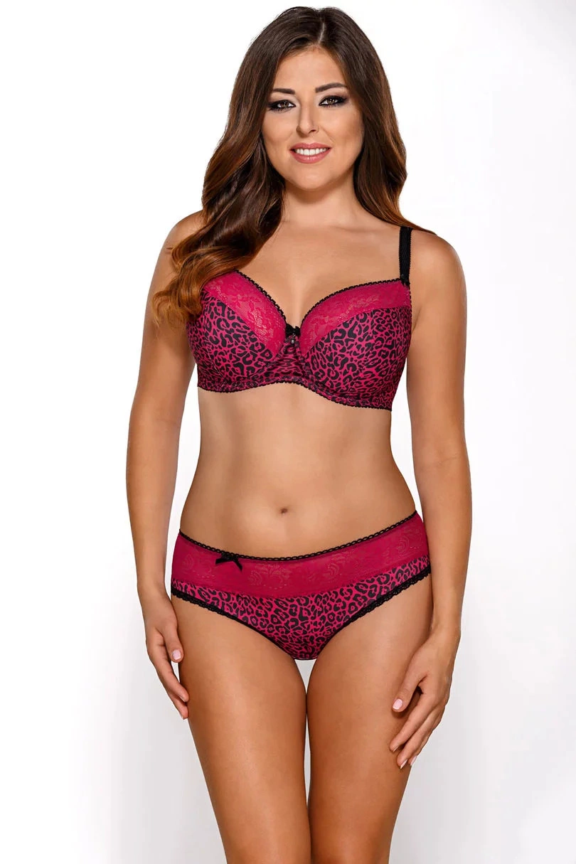 Exkluzívna polomäkká podprsenka. Košíčky sú z polovice vyrobené z mäkkej peny s látkou a dobre držia prsia. Vrchná časť je vyrobená z mäkkej čipky podšitej pevnejším materiálom (nestláča a nerozdeľuje prsia). Vzadu sa zapína na kovové háčiky. Popruhy sú nastaviteľné, neodnímateľné. 88% polyamid, 8% bavlna, 4% elastan. Podprsenka môže byť doplnená nohavičkami alebo tangami.