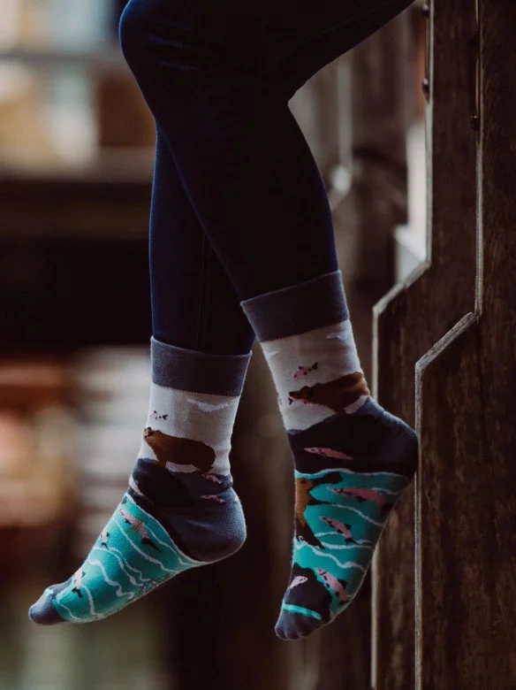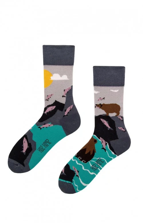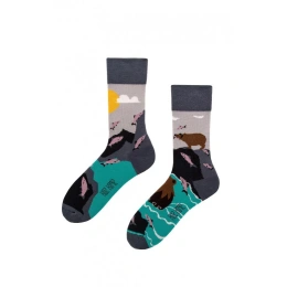Ponožky sú ozdobené zábavným vzorom. Model má vytvarované chodidlo a lem, ktorý pri nosení netlačia.
