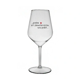 Nerozbitný číry pohár na víno s motívom BÝVAJÚCA SESTRA NIE JE PRELOMOVÁ je skvelý na záhradu, pláž, na výlet, piknik a skvele poslúži aj pri kempovaní. Keďže je vyrobený z kvalitného polykarbonátu, je de facto nerozbitný. Je to luxusný kúsok, s ktorým si môžete vychutnať víno jednoducho kdekoľvek. Má ergonomický tvar, ktorý pekne padne do ruky, a pretože je ľahký, uľahčuje prenášanie. Ľahko sa skladuje a ľahko sa čistí. Vďaka jeho dizajnu si môžete vychutnať bezproblémové pitie vynikajúceho vína naozaj kdekoľvek. Materiál PP. Vyrobený s láskou v Českej republike