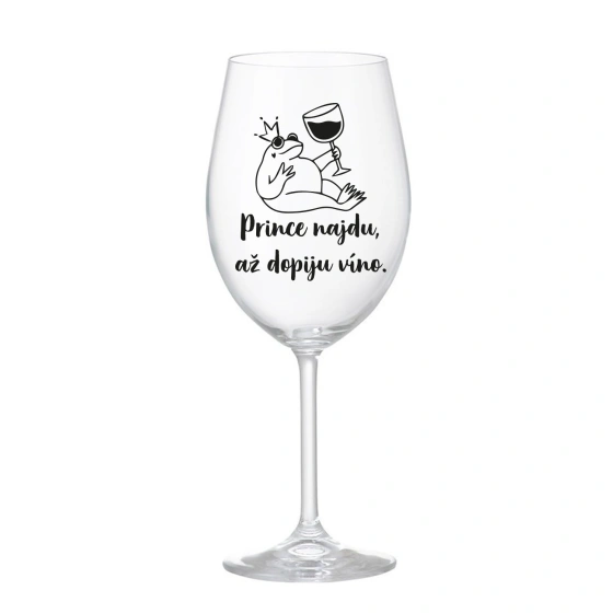 Pohár na víno 350 ml - "Princa nájdem, keď dopijem víno"