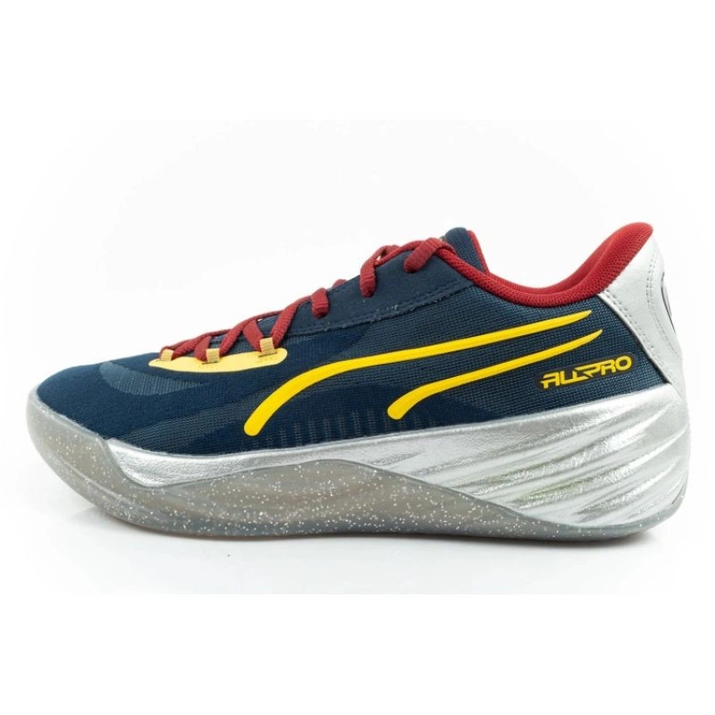 Puma All-Pro Nitro Polar Express vo farbe Club Navy-Intense Red je profesionálna športová obuv určená na dynamickú basketbalovú hru.