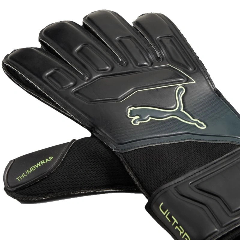 Brankárske rukavice Puma Ultra Play RC Heat Fire Black 42084 03 Brankárske rukavice Puma na bránenie technických zákrokov pri tréningoch a priateľských zápasoch. Tieto odolné a priľnavé rukavice udržia vaše ruky v bezpečí pri bránení. Voľný strih. Latexová reliéfna dlaň. Textilné panely so sieťovinou. 2 mm hrubá extra mäkká latexová dlaň. Technológia Thumbwrap umiestnená v oblasti palca zvyšuje kontaktnú plochu lopty s latexom. Latexový pásik na zápästie so suchým zipsom.