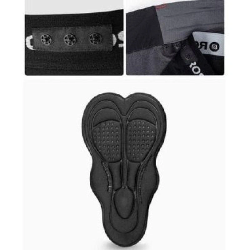 Spodenki rowerowe są wykonane z gęstego, przylegającego do ciała nylonu, który jest przyjemny w dotyku i oddychający. Szybko schną od potu i mogą być używane podczas aktywnych treningów. Pas spodenek rowerowych jest elastyczny, ozdobiony wyszytym logo marki. Zawiera kilka rzędów guzików, które służą jako zatrzaski do mocowania szortów.