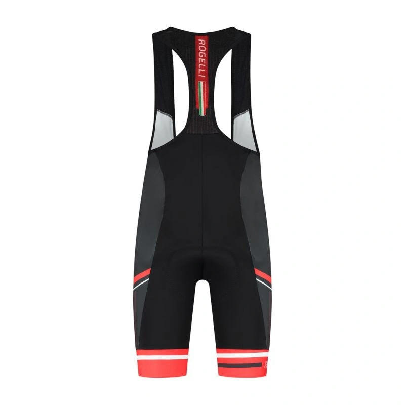 Topowy model spodenek kolarskich wykonany z elastycznego i trwałego materiału Lycra PERFORMER z żelową, ergonomicznie uformowaną wkładką. Wkładka ta została opracowana w wyniku długoterminowych i dokładnych badań potrzeb kolarzy, osiągając maksymalny efekt w zakresie termoregulacji i komfortu jazdy. Powierzchnia wkładki została wykonana z oddychającego, antybakteryjnego materiału, który zapewnia odprowadzanie potu w kluczowych punktach, gdzie ciało styka się z siodłem rowerowym. Wyższe części żelowe z materiału o efekcie pamięciowym utrzymują stabilny komfort nawet przy wielokrotnym użytkowaniu, a dzięki przemyślanemu podziałowi poszczególnych poduszek żelowych można cieszyć się komfortem podczas dłuższej i bardziej wymagającej jazdy. Wyższy krój panelowy zapewnia mocne dopasowanie spodenek wokół tułowia kolarza. Oddychające ramiączka z siateczki odprowadzają pot z tylnej części ciała. Nogawki zakończone są szeroką elastyczną lamówką, która zapobiega