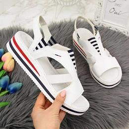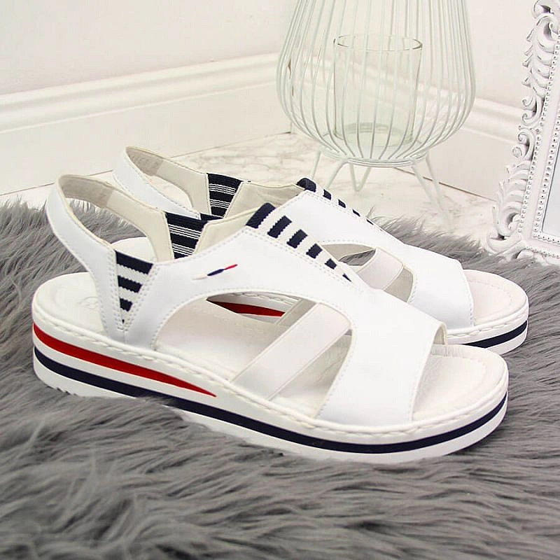Rieker W V02Y5 biele sandále na platforme s podpätkami