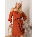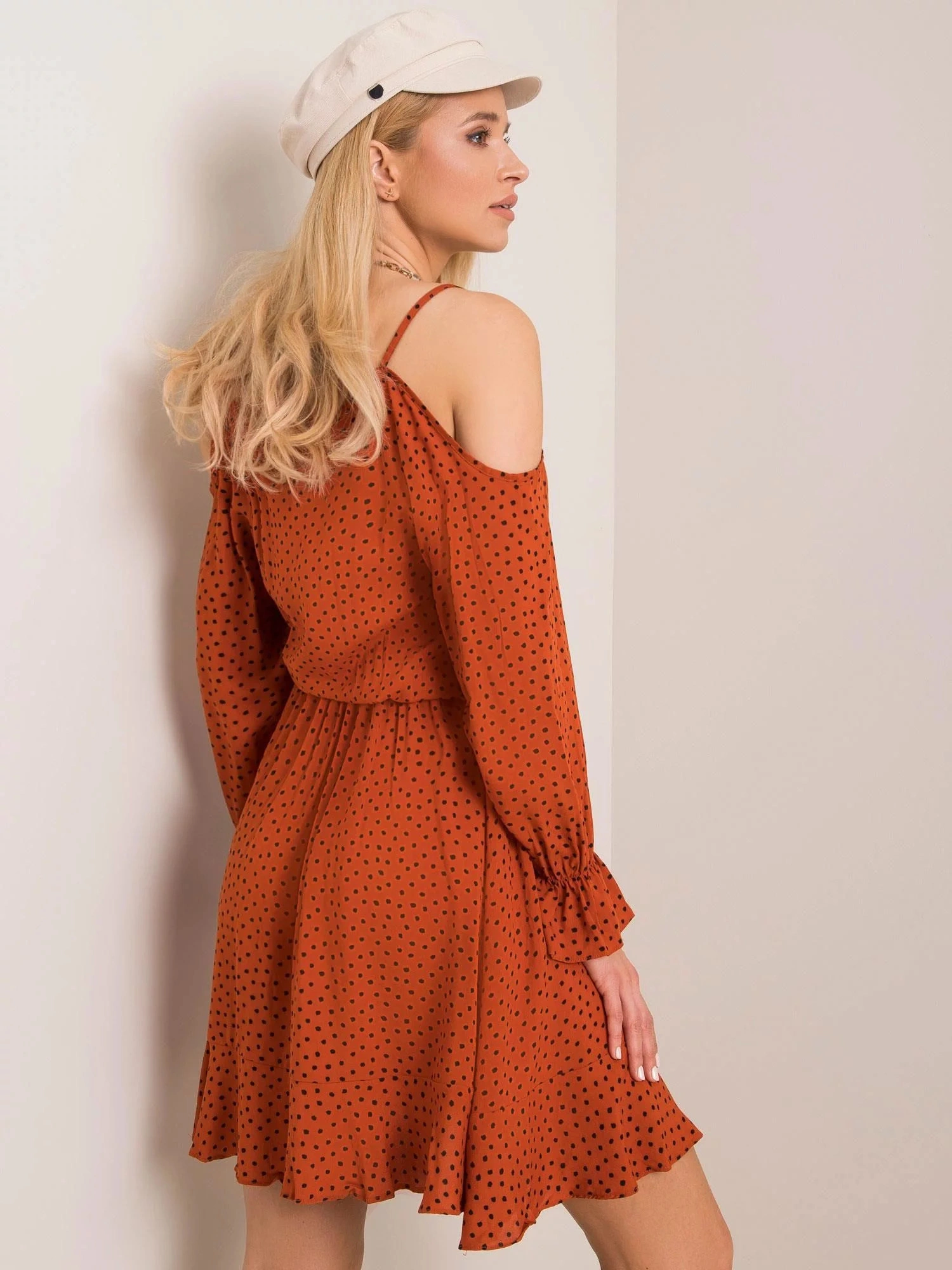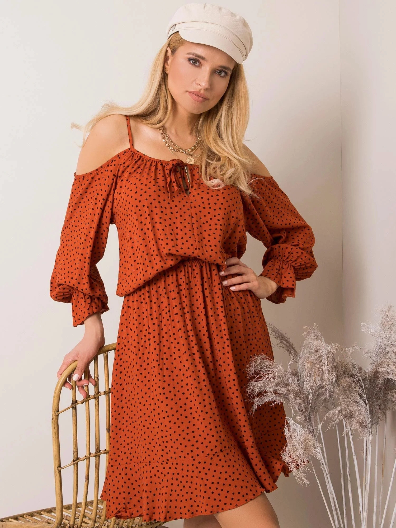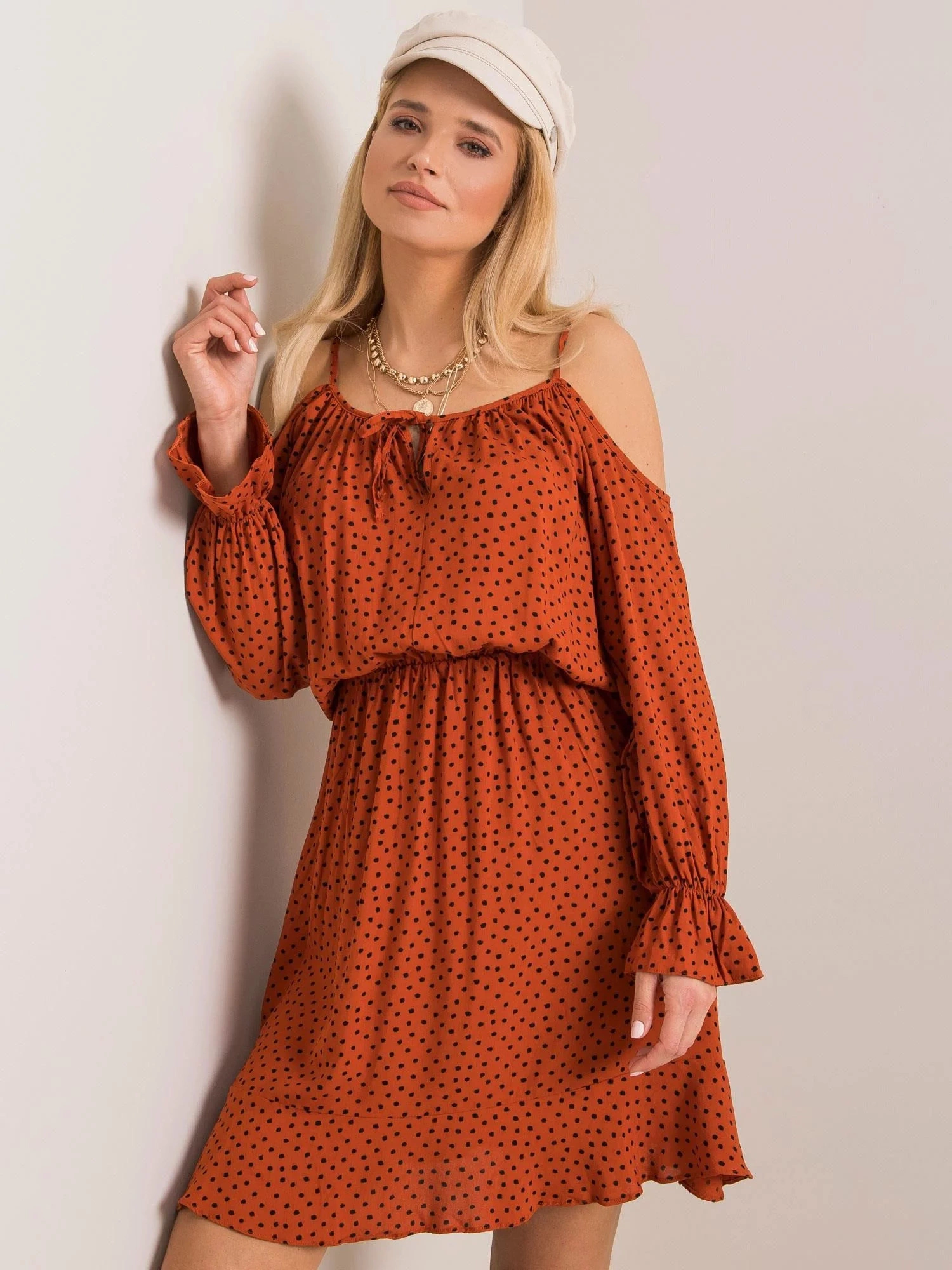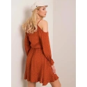 Modelka má na sebe veľkosť S. Rozmery modelky: výška 175 cm, prsia 84 cm, pás 65 cm, boky 92 cm.