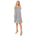 100% polyester Tieto šaty sú tak univerzálne. Šaty môžete štylizovať rôznymi spôsobmi: nosiť ich voľne a nechať látku mierne splývať, pridať opasok na zaviazanie v páse, stiahnuť šaty nad opaskom a zrolovať ich pre očarujúcejší vzhľad. INFORMÁCIE O PRODUKTE: flitrová tkanina mini dĺžka Šaty v línii A s opaskom na zaviazanie pretiahnutým cez hlavu (ideálny strih pre detský zadoček) bateau výstrih dlhé biskupské rukávy s elastickými lemami plne podšité starostlivo dokončeným lemovaním, ktoré neublíži vašej pokožke ani neroztrhne pančuchy naša modelka je vysoká 171 cm a nosí veľkosť S